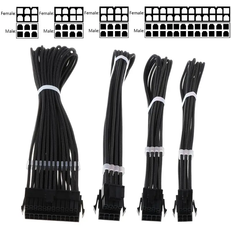 Best Quality 1 Set Basic Extension Cable Kit ATX 24Pin/ EPS 4+4Pin / PCI-E 6+2Pin/ PCI-E 6Pin Power Extension Ca